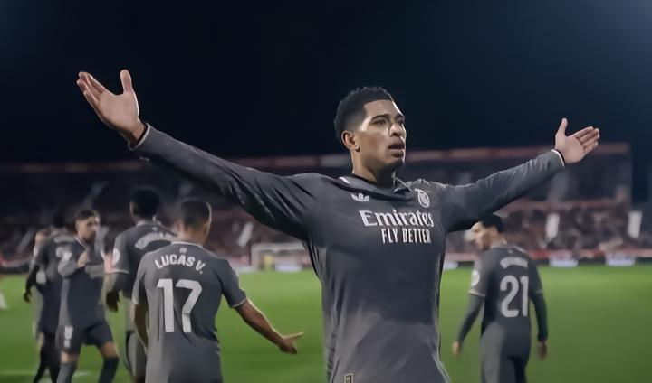 此役客场对阵赫罗纳,贝林厄姆在比赛第36分钟破门,为皇马取得1-0领先。