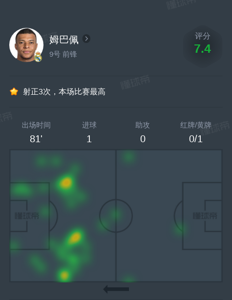 北京时间12月8日赫罗纳vs皇家马德里,姆巴佩贡献1球,4次射门。