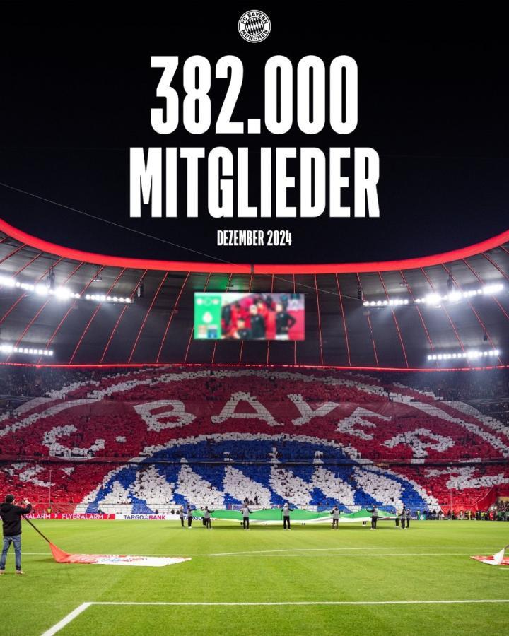 在拜仁慕尼黑2024年度股东大会上,俱乐部宣布,拜仁慕尼黑的注册会员达到382000名,为世界体育俱乐部注册会员最多的。