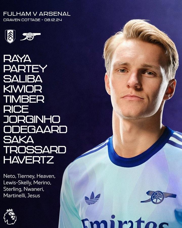 北京时间今晚22点,阿森纳将迎来英超第15轮客场对阵富勒姆的比赛,目前双方的首发阵容已经公布,其中厄德高首发出战。