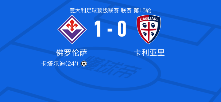 北京时间12月8日佛罗伦萨vs卡利亚里,卡塔尔迪得到全场最高的7.9分,莫伊塞-基恩得到全场最低的6.2分