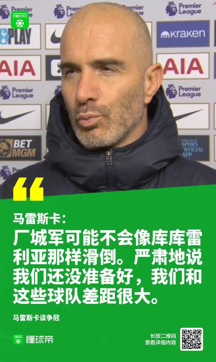 阿森纳、曼城和利物浦可能不会像库库雷利亚那样滑倒。严肃地说,我们还没准备好,我们和这些球队差距很大,但我们专注于每一天,努力改进球队。