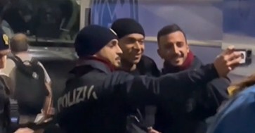 他是皇马最后一个上车前往酒店的人,他看起来相对平静,没有跛行,甚至还与现场的球迷和意大利警察合影。