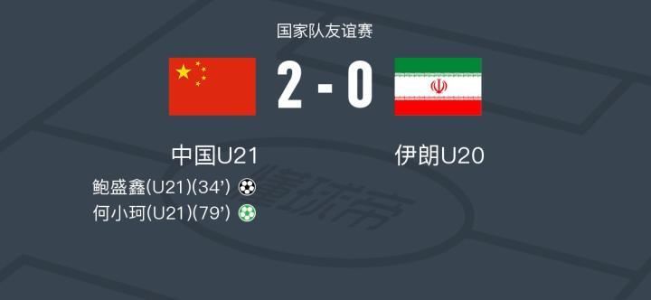 本场比赛上半场,中国队11号鲍盛鑫打入一球,以1比0领先结束半场。下半场比赛,何小珂点射帮助U21男足扩大领先优势。最终,中国U21男足2比0战胜伊朗U20。