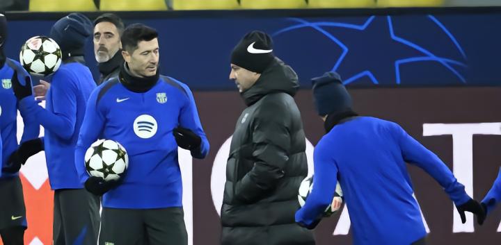 在训练场上,巴萨主帅弗里克在训练开始前与球员们进行了长时间的讲话,但并未进行明确的首发阵容演练,而是将球员们进行了混编训练。