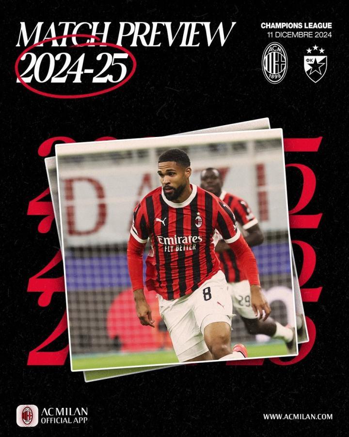欧冠联赛阶段第6轮,米兰将主场对阵贝尔格莱德红星,米兰此前6次欧战对阵贝尔格莱德红星保持不败。