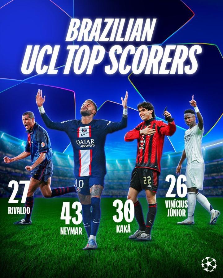 赛后来自欧冠官方的统计指出,本轮比赛的进球是维尼修斯职业生涯至今在欧冠打进的第26球,目前在巴西球员欧冠历史进球排行榜上他位列第四。排在维尼修斯之前的四名球员分别是内马尔(43球)、卡卡(30球)以及里瓦尔多尔(27球)。