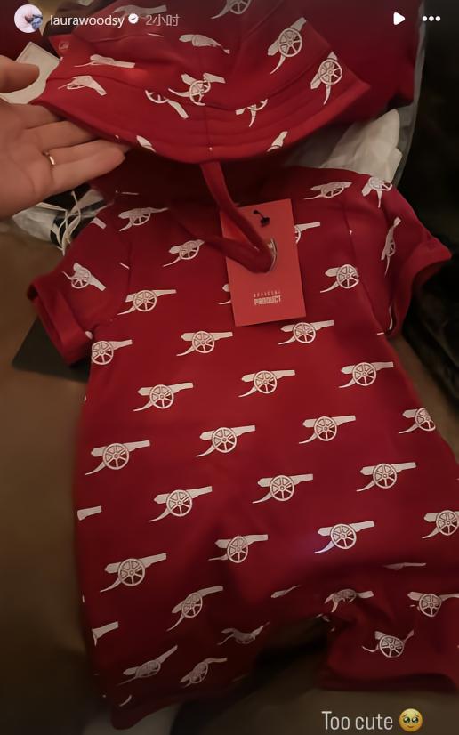可以看到,这份礼物中是印有阿森纳队徽的婴儿服,一件是白色,另一件是红色,劳拉-伍兹也与阿尔特塔拥抱表示感谢,并且在社交媒体上向阿森纳表示了感谢。