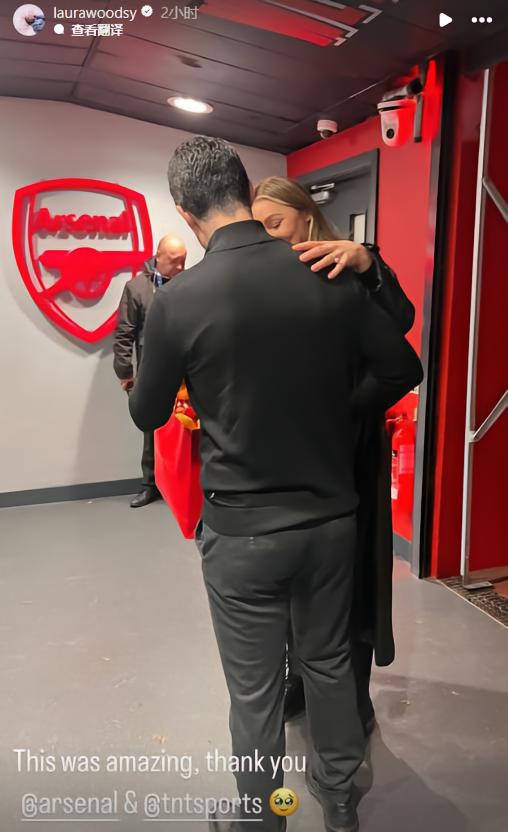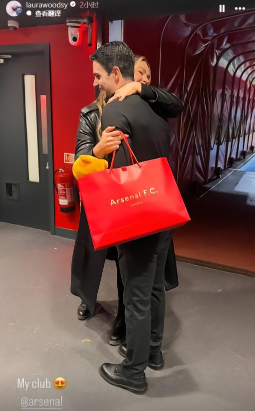 在社交媒体上的照片可以看到,比赛结束之后,阿尔特塔代表阿森纳向TNT Sports主持人兼阿森纳球迷、怀孕的劳拉-伍兹赠送了一份礼物。
