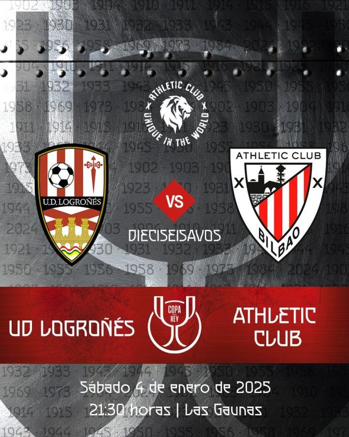 官方消息,洛格罗涅斯体育联盟对阵毕尔巴鄂竞技的国王杯第三轮比赛将提前一天进行,与毕尔巴鄂竞技的西超杯对手巴萨的国王杯比赛同一天进行。