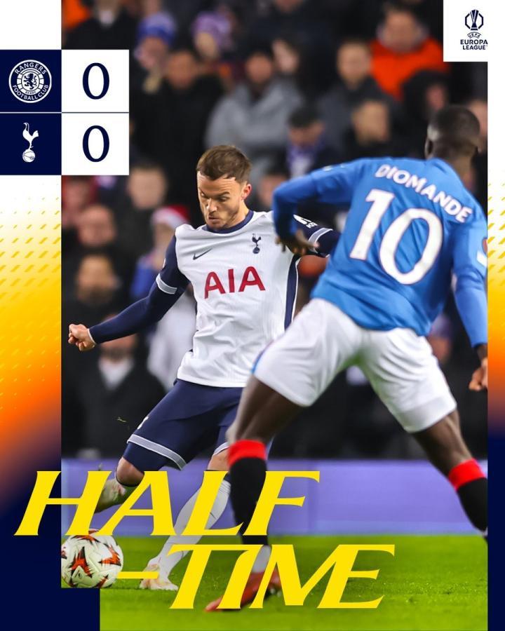 在欧联杯联赛阶段第6轮的比赛中,托特纳姆热刺在半场过后客场0-0与格拉斯哥流浪者互交白卷。