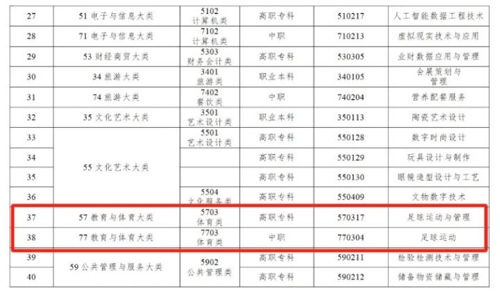 相关新闻阅读:【教育部《职业教育专业目录》上新,增设足球运动等专业】