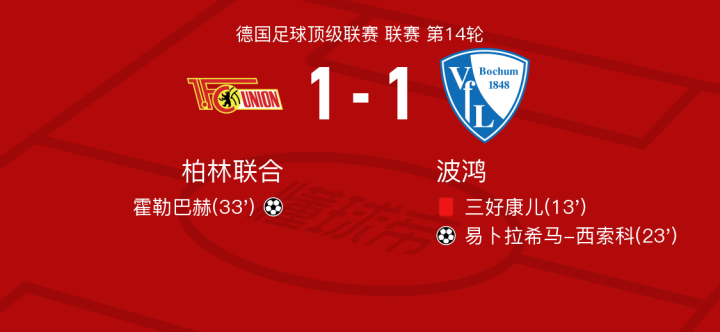 北京时间12月14日柏林联合vs波鸿,罗伯特-斯科夫得到全场最高的8.6分,三好康儿得到全场最低的3.0分