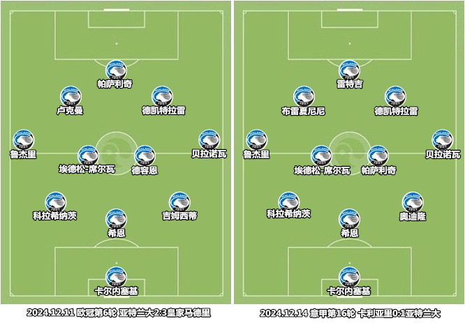 过去10天连续完成3场强强对话,亚特兰大的首发阵容只出现了2处变化。雷特吉和奥迪隆首发迎战罗马,两名球员在随后两场比赛坐上了替补席,加斯佩里尼用击败AC米兰的原班人马迎击银河战舰。