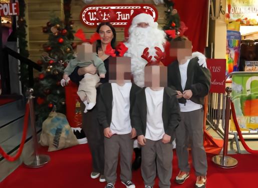 安妮的头上戴着鹿角,抱着最小的儿子雷宗(7个月大),与圣诞老人一起拍摄全家福,而11岁的罗曼、7岁的里亚恩和5岁的雷恩则站在旁边。