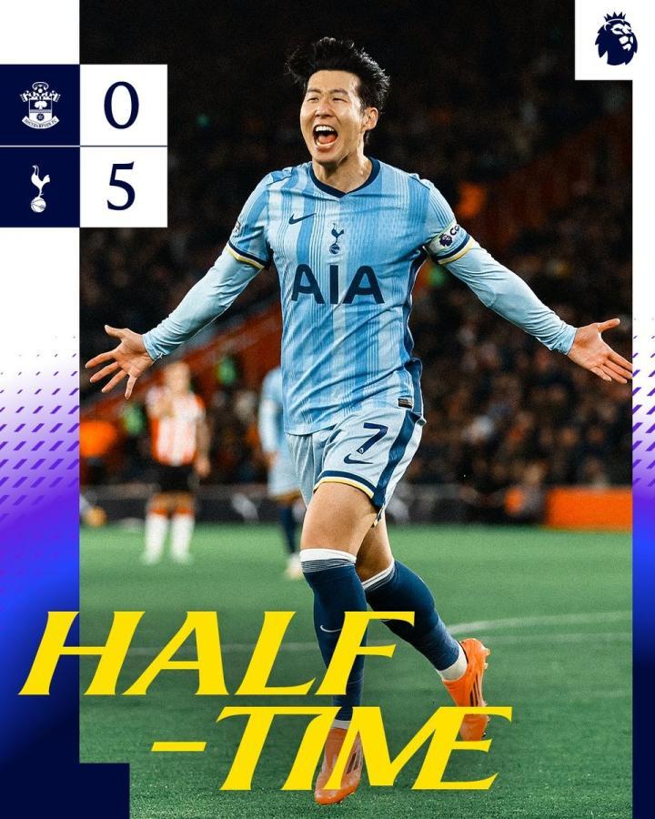 在英超第16轮的比赛中,托特纳姆热刺半场过后就在客场5-0大比分领先于南安普顿,麦迪逊完成梅开二度,孙兴慜、库卢塞夫斯基以及帕普-萨尔也都分别建功。