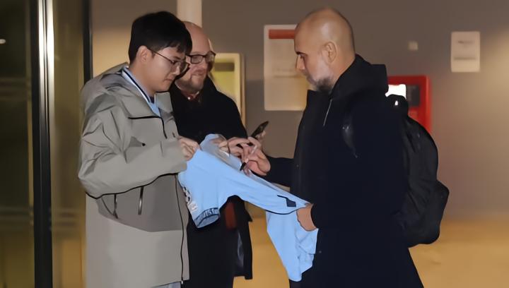 在今天凌晨进行的英超第16轮比赛中,曼城主场1-2不敌曼联,根据《每日邮报》的最新报道,在比赛结束回到公寓之后,瓜迪奥拉遇到了曼城球迷,并且为他签名。