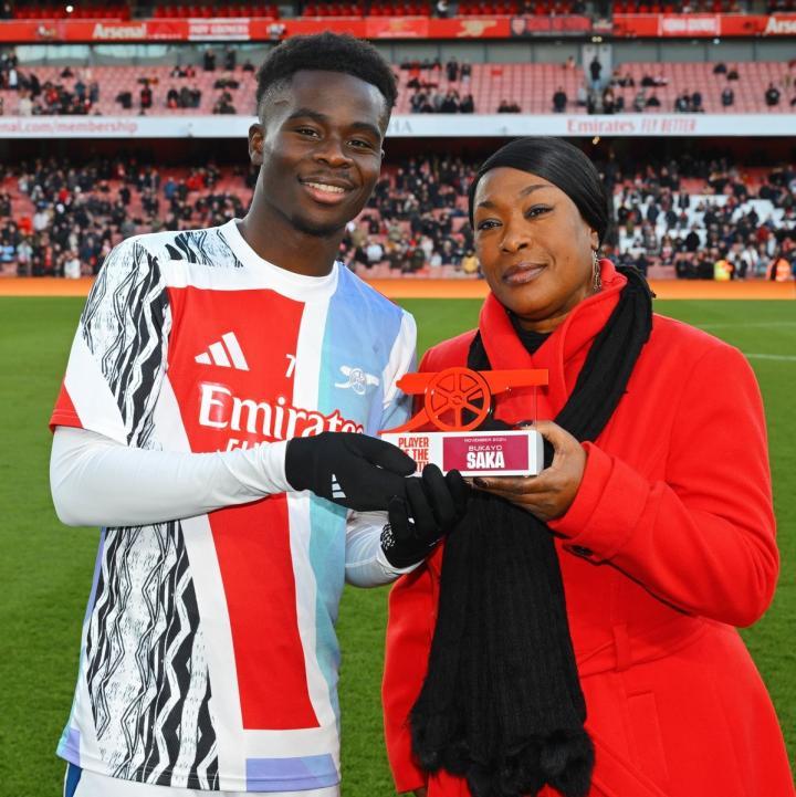阿森纳官方晒照,萨卡领取了队内11月最佳球员奖。