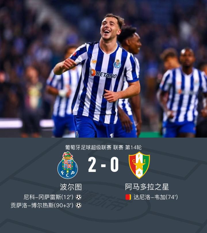 波尔图2-0阿马多拉之星,冈萨雷斯破门,博尔热斯锁定胜局