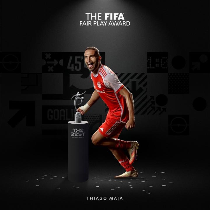 国际足联官方宣布,目前效力于巴西国际的巴西中场蒂亚戈-马亚荣获FIFA2024公平竞赛奖。