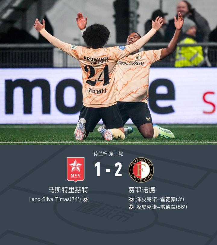 费耶诺德客场2-1淘汰马斯特里赫特,雷德蒙梅开二度