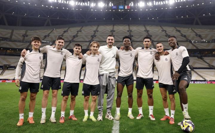 何塞卢在昨日前往了皇家马德里在多哈的下榻酒店,并随后观摩了皇马全队的训练,并与老队友们合影留念。