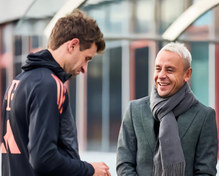 当地时间本周三,拜仁名宿拉菲尼亚回到了塞本纳大街,探望了以前的队友并探班球队的训练。