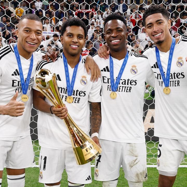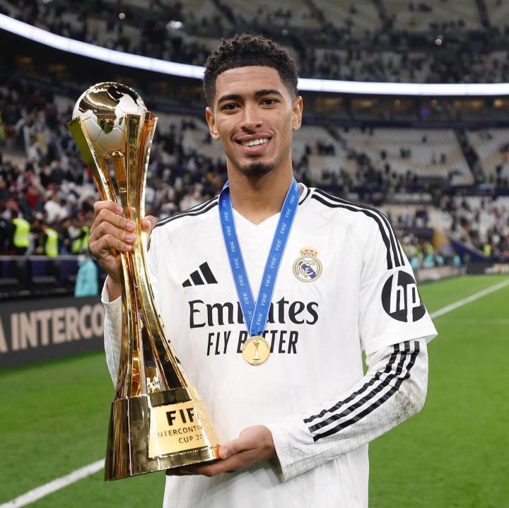 皇家马德里夺得2024年洲际杯冠军,贝林厄姆更新社交媒体庆祝夺得年度第五冠。