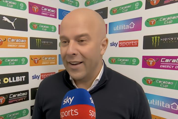 英联杯1/4决赛,利物浦客场2-1击败南安普顿,赛后,红军主帅斯洛特在接受采访时表示,他们必须捍卫英联杯冠军,在谈到被禁赛时,斯洛特表示看台上的视野比教练席好很多。