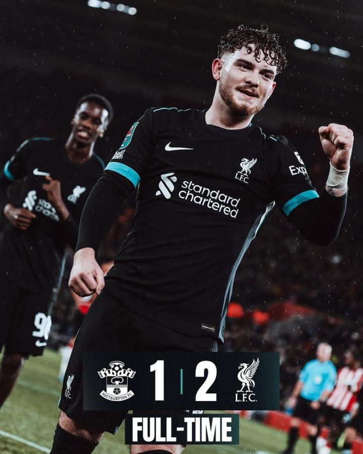 凭借努涅斯和埃利奥特各入一球,利物浦客场2-1击败南安普顿,队史第20次晋级英联杯半决赛,创英联杯历史纪录,利物浦此前曾10次夺得英联杯冠军,同样为历史最多。