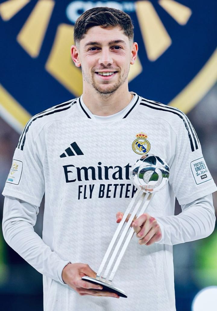 在世界俱乐部洲际杯的决赛中,皇家马德里依靠姆巴佩、罗德里戈以及维尼修斯的进球3-0击败墨西哥球队帕丘卡赢得冠军,赛后赢得洲际杯银球奖的费德里科-巴尔韦德在社交媒体上发文庆祝了胜利。