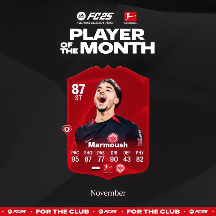 官方消息,法兰克福前锋马尔穆什当选德甲11月最佳球员。