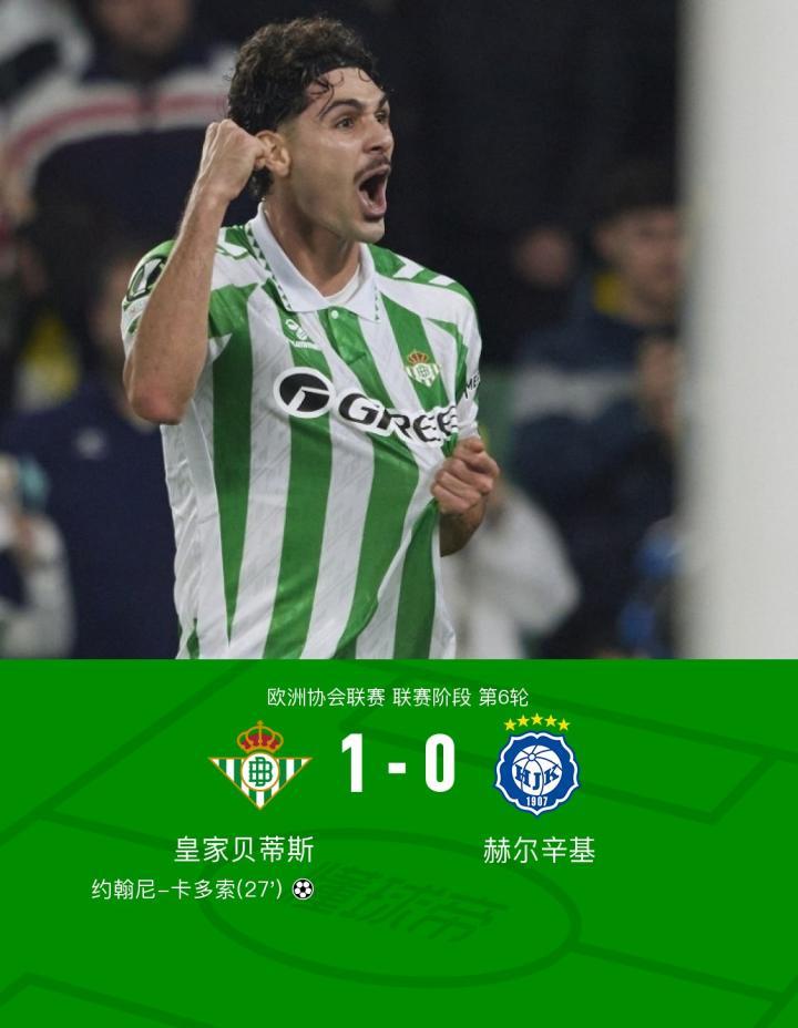 皇家贝蒂斯1-0赫尔辛基,约翰尼-卡多索制胜