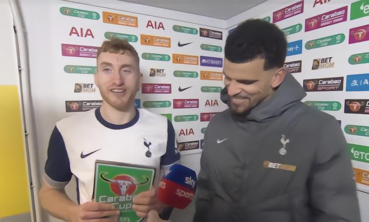 英联杯1/4决赛,热刺主场4-3击败曼联,此役打入一球的库卢塞夫斯基当选全场最佳球员。