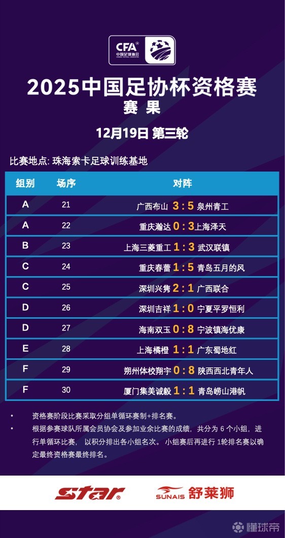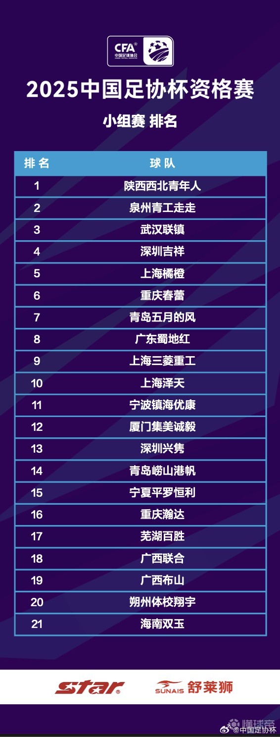 北京时间12月20日,2025赛季足协杯资格赛排位赛全部结束。历经三轮小组赛和一轮排位赛共四个比赛日的激烈角逐,2025赛季足协杯资格赛的征程已经落下帷幕。21支队伍中最终有12支球队突出重围,晋级2025中国足协杯正赛,其中陕西西北青年人表现出色,资格赛四战全胜最终排名第一。