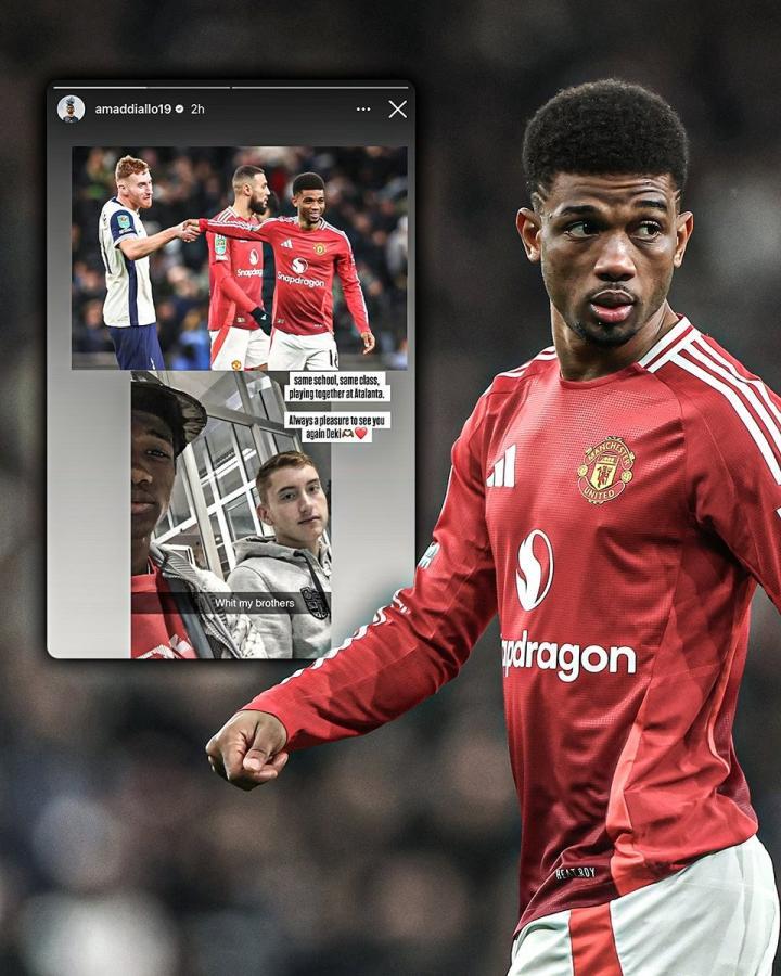 今日,阿马德-迪亚洛在社交媒体晒出他和库卢塞夫斯基昔日合照以及本场比赛的握手照片,配文:“同一所学校,同一班,一起在亚特兰大踢球。总是很高兴再次见到你,Deki🫶🏾❤️”