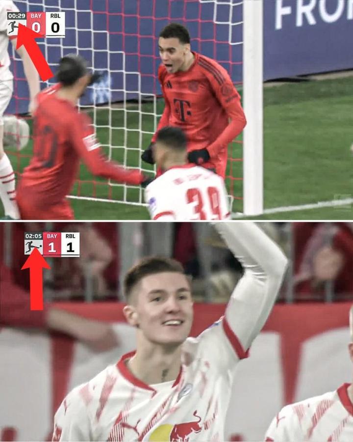 本场比赛,穆西亚拉在开场第1分钟破门为拜仁慕尼黑取得1-0领先,莱比锡迅速给出回应,由谢什科在比赛第2分钟破门将比分扳为1-1。