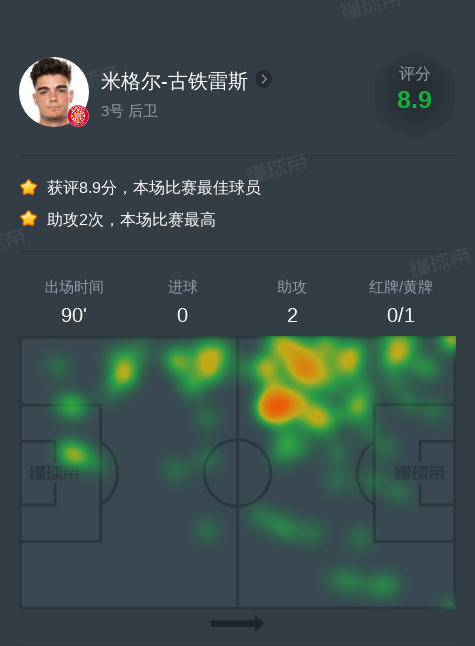北京时间12月21日赫罗纳vs巴拉多利德,米格尔-古铁雷斯2助攻,4次关键传球,3次射门,1次成功过人。