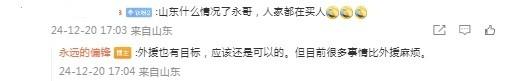 随后,有球迷在评论区留言询问:“山东(泰山)什么情况了,人家都在买人。”
