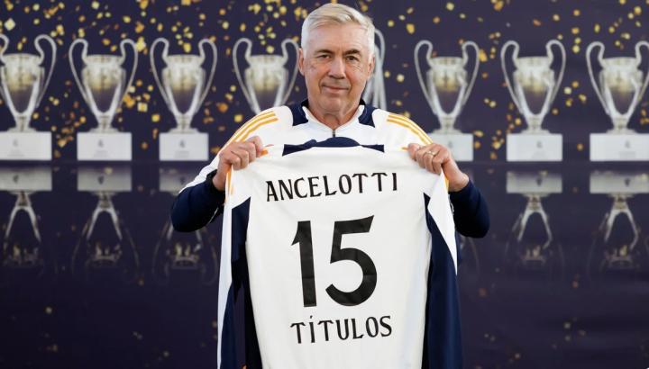 安切洛蒂获赠15冠纪念球衣,并表示:“能够取得这样的成就是一种荣幸和快乐。我必须与俱乐部分享。首先,因为俱乐部给了我重返球队的机会;其次,因为皇马让我能够训练出技术水平非常高的球员,这是关键。”