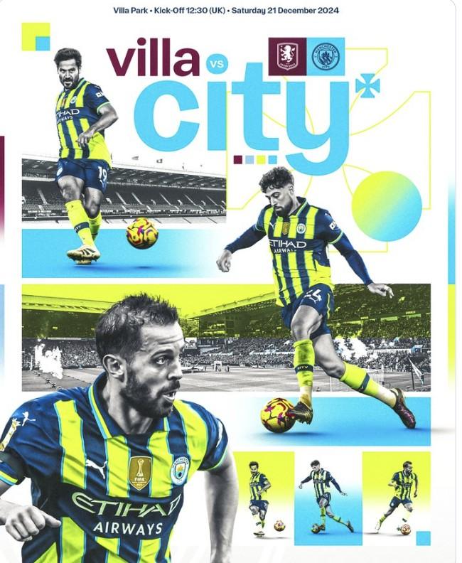 北京时间12月21日晚上20:30分,英超第17轮,曼城将前往客场挑战阿斯顿维拉。赛前,曼城官方发布了本场比赛的预热海报。