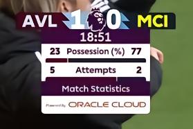 在杜兰取得进球之后,转播信号提供了当时双方的实时数据,其中曼城的控球率高达77%占据绝对优势,但他们的射门次数却只有2次,而阿斯顿维拉则有5次射门,而且这其中有4次都射正了球门。