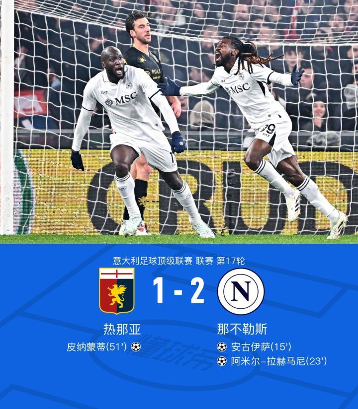 那不勒斯2-1热那亚,安古伊萨、拉赫马尼建功,皮纳蒙蒂破门