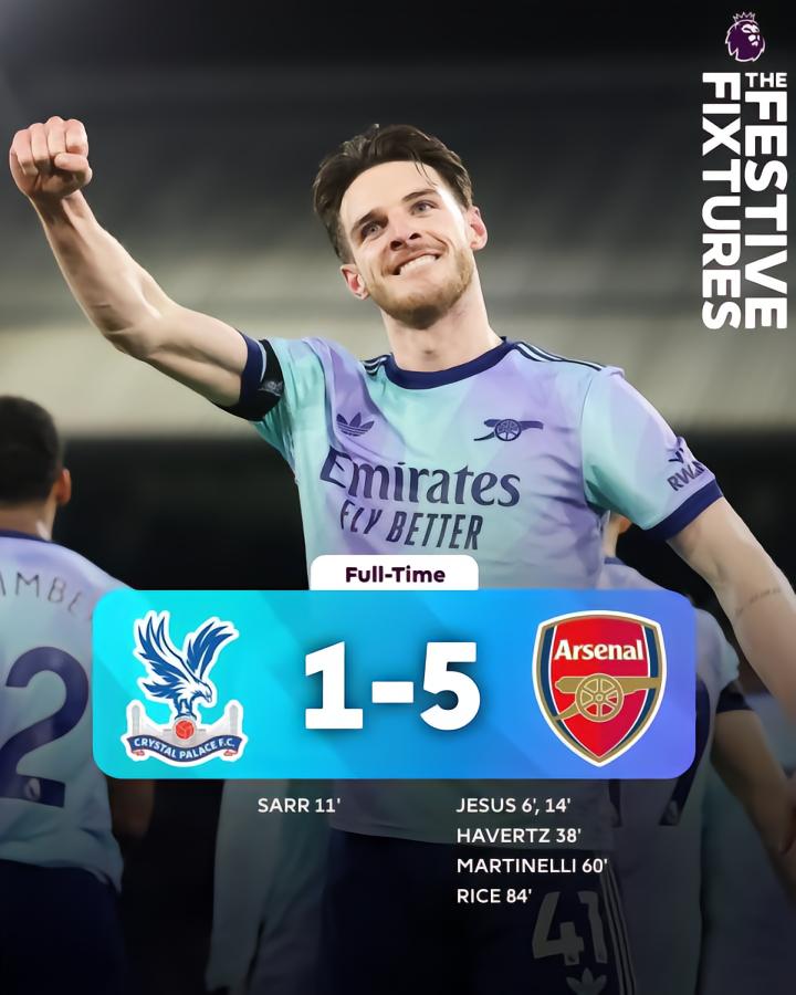 “伦敦之王”非枪手莫属:他们成为自2005年的切尔西后首支在自然年(2024年)所有英超伦敦德比战都保持不败的球队(8胜2平)。这也是他们首次在联赛客场5次攻破水晶宫队的大门。亮点很多:运动战创造的机会多不胜数;热苏斯的爆发;斯凯利在左后卫的稳定发挥;大卫-拉亚偶有传球失误但几次近距离扑救相当神勇;赖斯替补上阵非常生猛也打进本季个人英超首个入球,上季他可是有7球进账的。唯一遗憾:萨卡伤退。