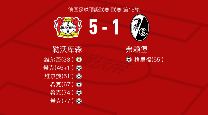 北京时间12月22日勒沃库森vs弗赖堡,希克得到全场最高的10分,霍夫勒得到全场最低的5.6分