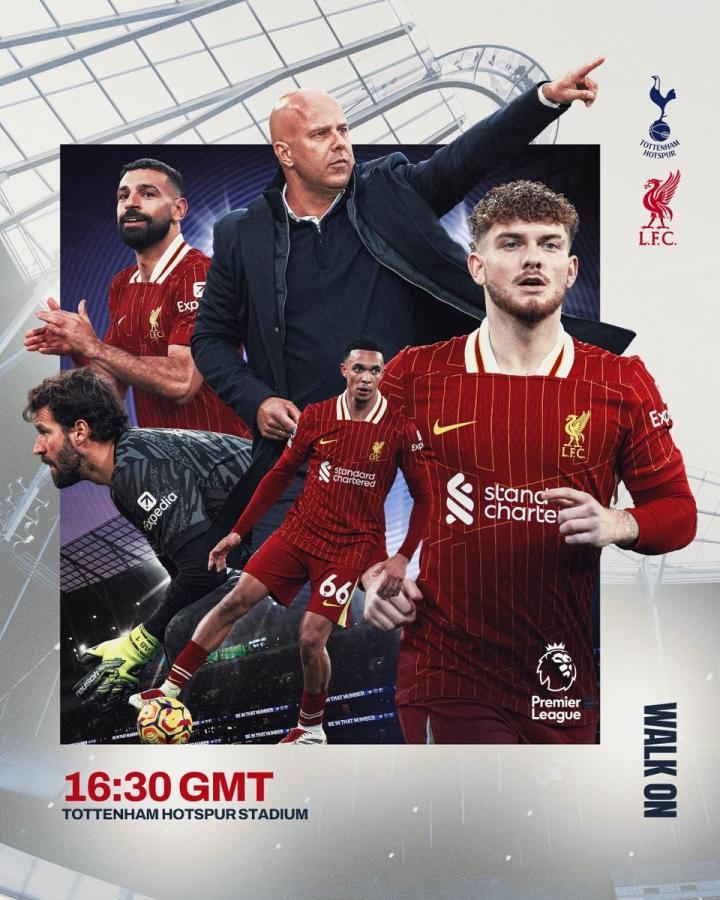 北京时间12月23日凌晨0点30分,英超联赛第17轮,利物浦将在客场对阵热刺。赛前,利物浦官方晒出了本场比赛的赛前海报。