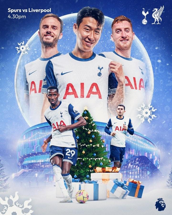 北京时间12月22日,热刺发布主场战利物浦的赛前海报,海报以圣诞为背景,队长孙兴慜领衔出镜。