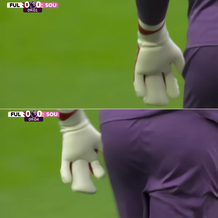 此役南安普顿客场对阵富勒姆,拉姆斯代尔首发出战,迎来复出。不过这位英格兰门将戴着一副特殊的四指手套出场。