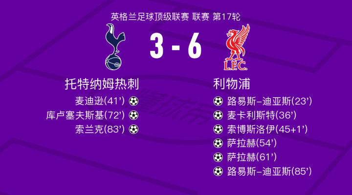 北京时间12月23日托特纳姆热刺vs利物浦,萨拉赫得到全场最高的9.4分,德拉古辛得到全场最低的5.7分