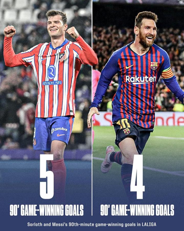 在对阵巴塞罗那的比赛中第96分钟攻入绝杀进球后,马德里竞技前锋瑟洛特打破了梅西保持的西甲第90分钟后制胜球纪录。